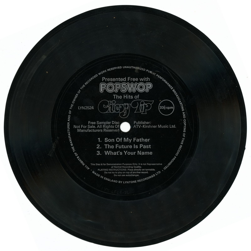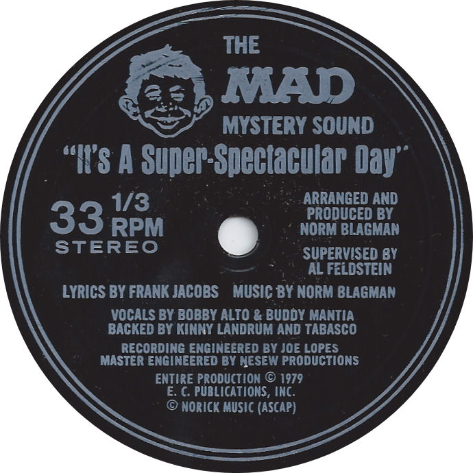 I should mention flexi discs here as one famous multi groove track was "It's a Super-Spectacular Day" issued by MAD magazine in 1980. Flexi discs were thin plastic discs (or in some cases cardboard with a thin plastic coating) that were often given away with magazines and featured tracks that wouldn't normally be available. Music magazines like Flexipop (1980-1983) gave one away with each issue and New Musical Express featured them on occasions. Music technology magazines like Keyboard often gave them away before upgrading to the cover mounted compact disc. The one given with MAD magazine had eight different versions of the song, each starting the same but ending with a different disaster to the day.