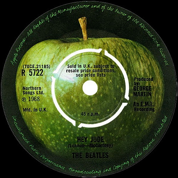 The labels on the records themselves were also a space for the designers to show their flair. Whilst originally the record label would have their own design for all their artists, later on the groups themselves had their own particular style. The Beatles were signed to Parlophone in the UK and Capitol Records in the US but in 1968 they started their own record label Apple Records, using an apple on the A side and a cut apple for the b side. The green apple changed colour when individual members of the group released their own music.