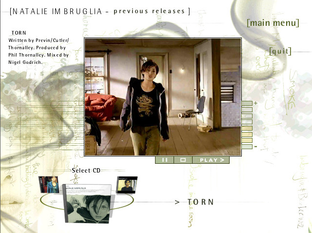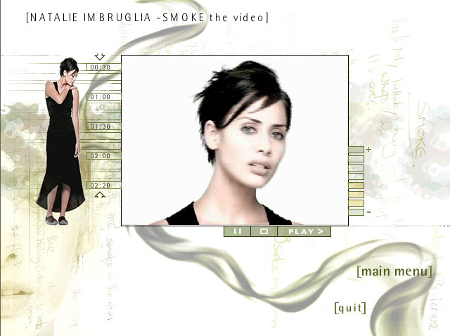 Some companies included versions to play on a Mac, so QuickTime was used for the video format. This meant that the installation files for QuickTime had to be included. Most would autorun and also be able to play the audio tracks and some would include the lyrics (the John Travolta and Olivia-Newton-John single from Grease had a small video size but included a sing a long lyrics option). Some artists had a slick interface, like Natalie Imbruglia's CD for Smoke. Not only did it feature a video message from Natalie but extracts of videos of her previous songs. It was a shame that it didn't actually include the whole video for Smoke (it fades out after two minutes). Aqua eventually settled for a standard interface for their CDs but always had a small frame or poor quality video, from their first hit 'Barbie Girl' to 'Good Morning Sunshine'. The latter had a live video performance of the song as this was the official video. Steps used the mpeg format on their CD for Deeper Shade of Blue and didn't have an autorun program at all.