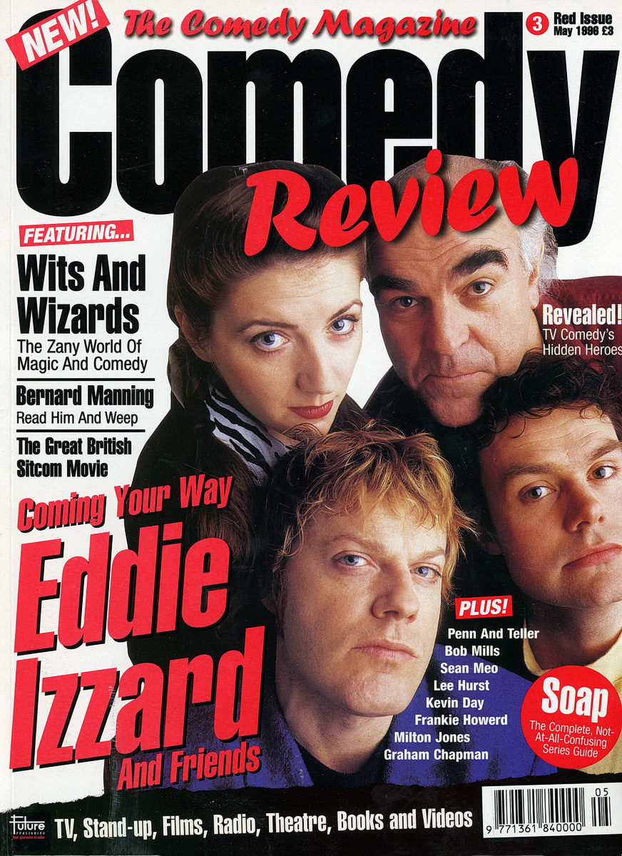 This short run magazine (5 issues) featured all the comedy that was big at the time. This issue (the red issue) had interviews with Kevin Eldon (who's now the voice of Penfold in the new Danger Mouse cartoon), Milton Jones, Graham Chapman (an interview from 1989), Eddie Izzard, Penn and Teller, Bernard Manning and a piece by Peter Baynam. There's an article on Sitcom movies, like Bless This House, Porridge and Rising Damp. There's a rather harsh list of 41 things that were supposed be but were never funny, including Bread, Butterfiles, Nuns on the Run, Charlie Chaplin and Drop the Dead Donkey. There's the script from Roxanne when Steve Martin does his 20 big nose insults (he actaully does 25), part two of their list of the Cambridge Footlights of the 70's and 80's, from Douglas Adams to Punt and Dennis, and a complete episode guide and story about the comedy Soap, with nice full page cast photo featuring a young Billy Crystal. The magazine cost £3 exactly and adverts include the Nintendo Ultra 64 games console.