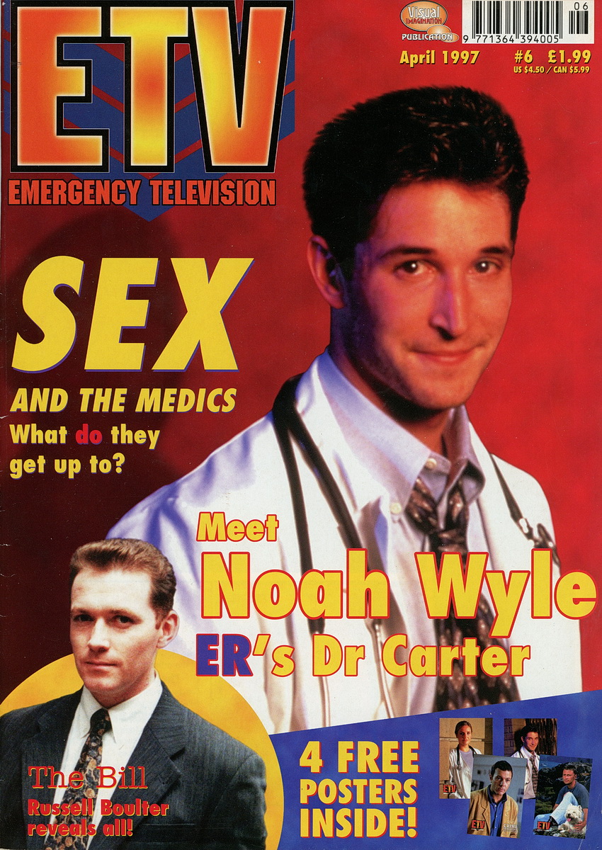 Emergency Television was a magazine that featured police, medical and fire themes programmes. This issue has features on The Bill, ER, Casualty, Silent Witness, Due South, A Touch of Frost, and Peak Practice. There are updates on several episodes of The Bill, plus profiles on three of the stars. There's an interview with Noah Wyle about his role as Dr John Carter in ER, and profiles on Dr Doug Ross (George Clooney) and Jeanie Boulet (Gloria Reuben). Along with a look back at Dempsey and Makepeace there are two double sided posters of Sherry Stringfield/Noah Wyle and Robert Carlyle/Michael French. The magazine cost £1.99 and as far as I can tell there were only seven issues (this was issue six).