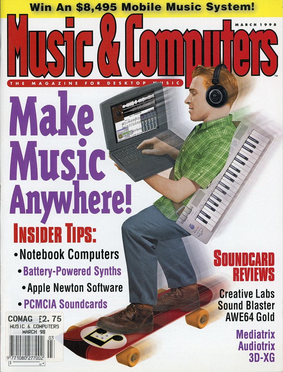 Another American magazine, this had the tagline of 'The Magazine for Desktop Music'. This issue covered computer music software such as QuickTime version 3.0 and hardware like the Creative Labs Sound Blaster AWE64 Gold. The articles give tips, like the one titled How Do I Get New Sounds From General Midi, there's a review of user submitted MOD files (music files with samples that predate SoundFonts) and there's an article called Hot Rods & MODS by George Alistair Sanger, aka The Fat Man. He did the music for the The 7th Guest game and there is advert for two of his CDs elsewhere in the magazine. As all the adverts and the classified section point to companies in the US I couldn't buy anything but the information was sound and they often had websites with audio samples of what they were talking about in the article. The magazine cost £2.75 (or $4.95 US) and adverts include Band-In-A-Box v7.0 for Windows and Mac at $88 and the Yamaha QY70 Music Sequencer at $599.95.
