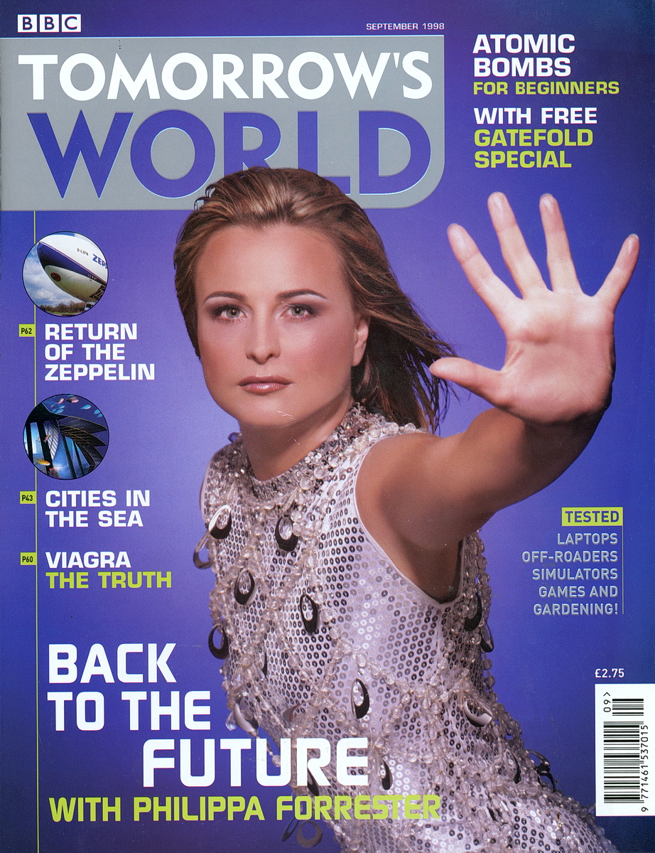 This was the magazine of the television show and it featured technology and innovation. This issue celebrated 33 years of Tomorrow's World and Phillipa Forrester was the host of a new series TW Time Machine. The Tomorrow Today section had snippets of news, including robotic sheepdogs, an explanation of public key cryptography, filming of the new series of Robot Wars and contact lens that correct colour blindness. There's an article on a new Zeppelin NT, the science behind atomic bombs and the explanation of the paranormal. The TWIRT section (Tomorrow's World Institute of Rigerous Testing) has reviews including the Sharp MD-R3H CD/MD, a three CD changer with a MiniDisc (£349.99, scoring 4/5), Toshiba Libretto 100CT Laptop (£1760 scoring 4/5) and PC game Unreal (£39.99 scoring 5/5). The magazine cost £2.75 and adverts include the Panasonic DS77 video camera with 3.8 inch screen and 3D Dream Garden Designer at £29.95.