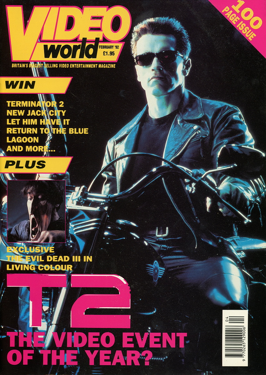 Tagged as 'Britains biggest selling video entertainment magazine' Video World was divided into three sections, competitions, features and regulars. In this issue, competition prizes included a copy of Communion, Blue Steel, Let Him Have It, New Jack City, one Scotch E180 blank VHS tape, a copy of Privare Lessons and via a premium phone line, a Harley 1200CC Sportster motorcycle. There's an article on the making of Terminator 2 (hence the front cover), Patsy Kensit, Gary Oldman, The Blue Lagoon 2, Evil Dead 3 and TV shows The Simpsons and Twin Peaks available on video. Screen Scene featured three films just released in cinema, namely Father of the Bride, Meet The Feebles and Problem Child 2. Bargain Basement highlighted video releases according to production company, which included The Darling Buds of May (Castle Pictures), The Addams Family TV series (Polygram) and the Mad Max trilogy (Warner Home Video). Other issues had reviews of LaserDisc releases and details of what parts of the film were edited out/in compared to the VHS release. The last 30 odd pages had adult telephone lines or videos for sale but in later issues these were collected together into one supplement in the middle of the magazine that could be removed. The magazine cost £1.95 and there weren't many adverts. Well, the one on the back for a video company had many VHS recorders and cameras but no prices, only a telephone number.