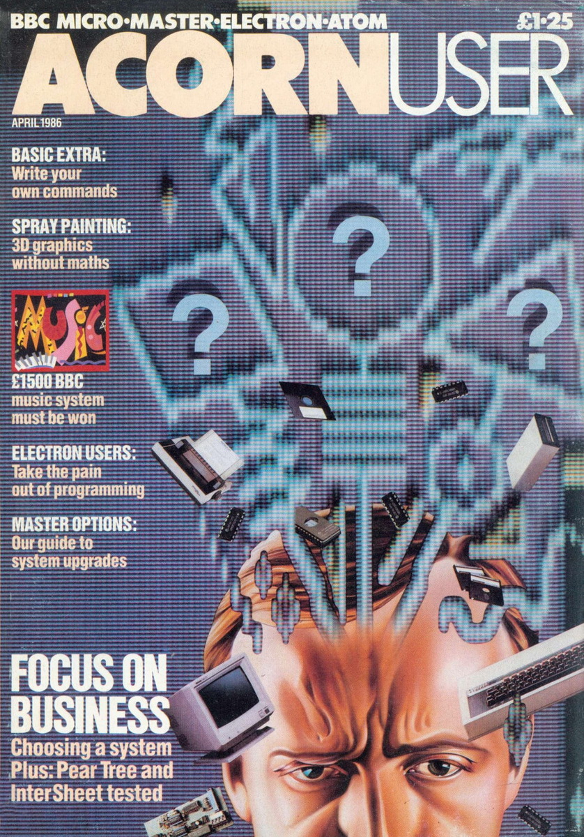 This was the magazine for BBC Microcomputer owners and was where I sold my music demos in the Small Ads section for three issues. There's an advert for the AMX Mouse, something of a novelty for the BBC Beeb, and a competition to win a Master 128 with a monochrome monitor and disc drive, a UMI-2B sequencer package, a Casio CZ-101 synthesizer (worth £345) and 25 runners up prizes of the Ultravox Collection album. All you had to do was send in a three minute song on cassette, and the judging panel including Tony Quinn, editor of Acorn User, Chris Cross from Ultravox, Linton Naiff who designed the UMI and Ed Jones from the London Rock Shop. There are hints and tips for new users, business and education news, including upgrading the word processor View from 2.1 to 3.0 for £23 with an additional £10 for the manual and a further £11.50 for the printer driver routines. The Electron & BBC Micro User Show is shown to be on from May 16 to 18 at the Royal Horticultural Hall in Westminster, with adult tickets £2 and children under 16 £1. There is a review of The Way of the Exploding Fist game, which was number two in the top 20 games (losing to Yie Ar Kung Fu). Adverts include a Quendata DWP 1120 Daisywheel printer for £149, a new Philips Colour Monitor CM8501 for £209 and Viglen weere selling a Dual Disc Drive with Acorn DFS for £337.