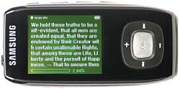 Although I like music and I'm into the whole mp3 thing, I've never had an mp3 player, so it was interesting to review the Samsung YP-T9J. I couldn't compare it to an iPod, as the only mp3 device I have is a CD player. As I archive all my mp3 files onto CD-Rs, it helps that I play them directly in a player without having to transfer files to a device. This MP3 player from Samsung plays mp3 files, wma files, videos, has a text browser, an FM radio, can view photos, has a couple of games and has a voice recorder.
