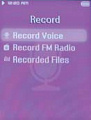 The Record section, or rather, the voice recorder, is very easy to use and you can set the mp3 bit rate to 96, 128, 160 or 192 kbps. You can