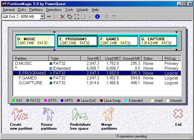 Improved wizards - there is a new wizard to merge adjacent FAT and FAT32 partitions. The Create Partition wizard incorporates two wizards from Partition Magic 4.0. You can now use the Create Partition wizard to prepare to install a new operating system. There is also a new Resize partitions wizard that makes it easier to resize partitions.