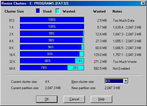 You can easily see the results of any action that you decide to take, which is particularly useful with the resize clusters wizard. Some changes may make very little difference, but some may dramatically improve your system. As some actions cannot be reversed, it is good that you can see the effect before applying it. As before, most of the changes take place in DOS, so when they are applied, the system re-boots into MS-DOS mode, makes the changes, and restarts Windows.
