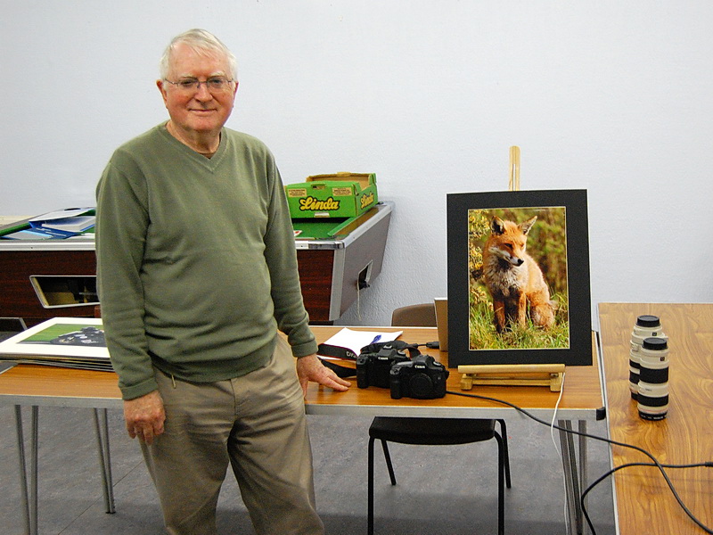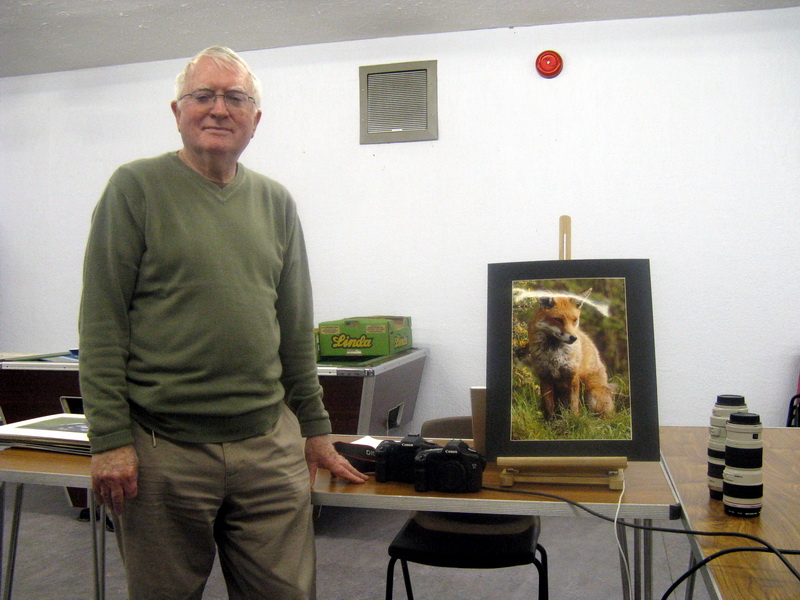 John Childs presented an interesting evening discussing his photography hobby using Canon cameras and various lenses which he manages to wield without a tripod. All these lenses are zoom lenses apart from a 50 mm traditional fixed lens and he mentioned that fixed lenses are actually more expensive than zoom lenses. He discussed the difference between JPEG for every day use and RAW images for special pictures that can have a lot more processing done in Photoshop or Paint Shop Pro. He also gave a number of useful tips for our summer holidays such as avoiding putting the subject in the middle of the picture and much better to put in one of the outer 1/3 sections. This tends to make the picture look more dynamic. Also if the subject is moving in especially sporting pictures it is a good idea to leave a space in front of the subject to move into which looks much more natural than the subject heading out of frame. In animal shots he generally aimed for the eyes and blurred the background and often crops the picture to focus especially on the animal. He said the blurring the background was very difficult for small cameras to achieve.
