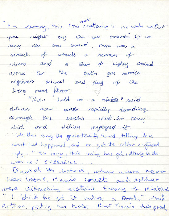 Back at school, where we've never been before, Mavis Cruet and Arthur were discussing Einstein's theory of relativity.